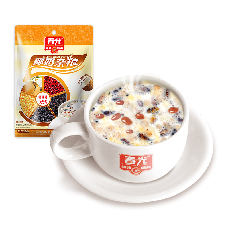 椰漿粉(20.5%)(椰子原汁、麥芽糊精、酪蛋白酸鈉、大豆磷脂、單,雙甘油脂肪酸酯、卡拉膠、辛烯基琥珀酸淀粉鈉、D-異抗壞血酸鈉)、白砂糖、植脂末、紅豆片(煮化紅豆片、膨化紅豆片)燕麥、麥片(小麥、燕麥、玉米、大豆)、馬鈴薯淀粉、白糯米、黑糯米、乳粉、黑芝麻。