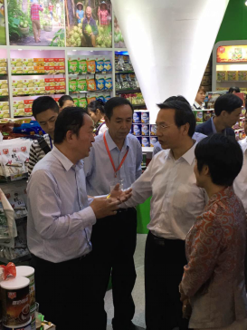 2015海南冬交會期間,海南春光食品館憑借 “生機勃勃、綠色健康”的雙層獨特展臺、創(chuàng)新的推介形式、以及瓊臺兩島知名主持人現(xiàn)場互動傳遞“兩岸一家親”的情懷,獲得諸多市民游客及國際友人的交口稱贊。12月14日,海南省委副書記李軍及文昌市委副書記、市長何瓊妹一行蒞臨春光館參觀指導,不僅認可了以產(chǎn)品體驗、現(xiàn)場互動為主的春光館,還對其學習創(chuàng)新精神及深化農(nóng)產(chǎn)品加工項目給予充分的肯定。