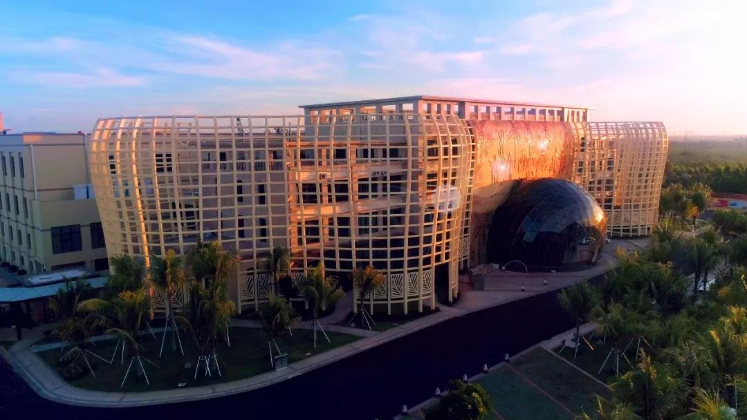 椰子王國(guó)占地60畝,目前已建有椰王宮、椰美食制程廊道、椰藝閣、椰之春、椰膳苑和御椰園六大空間,兼?zhèn)溲邪l(fā)生產(chǎn)、觀光旅游、親子休閑和購(gòu)物功能,由海南春光食品有限公司(以下簡(jiǎn)稱“春光食品”)耗資2.3億元興建。
