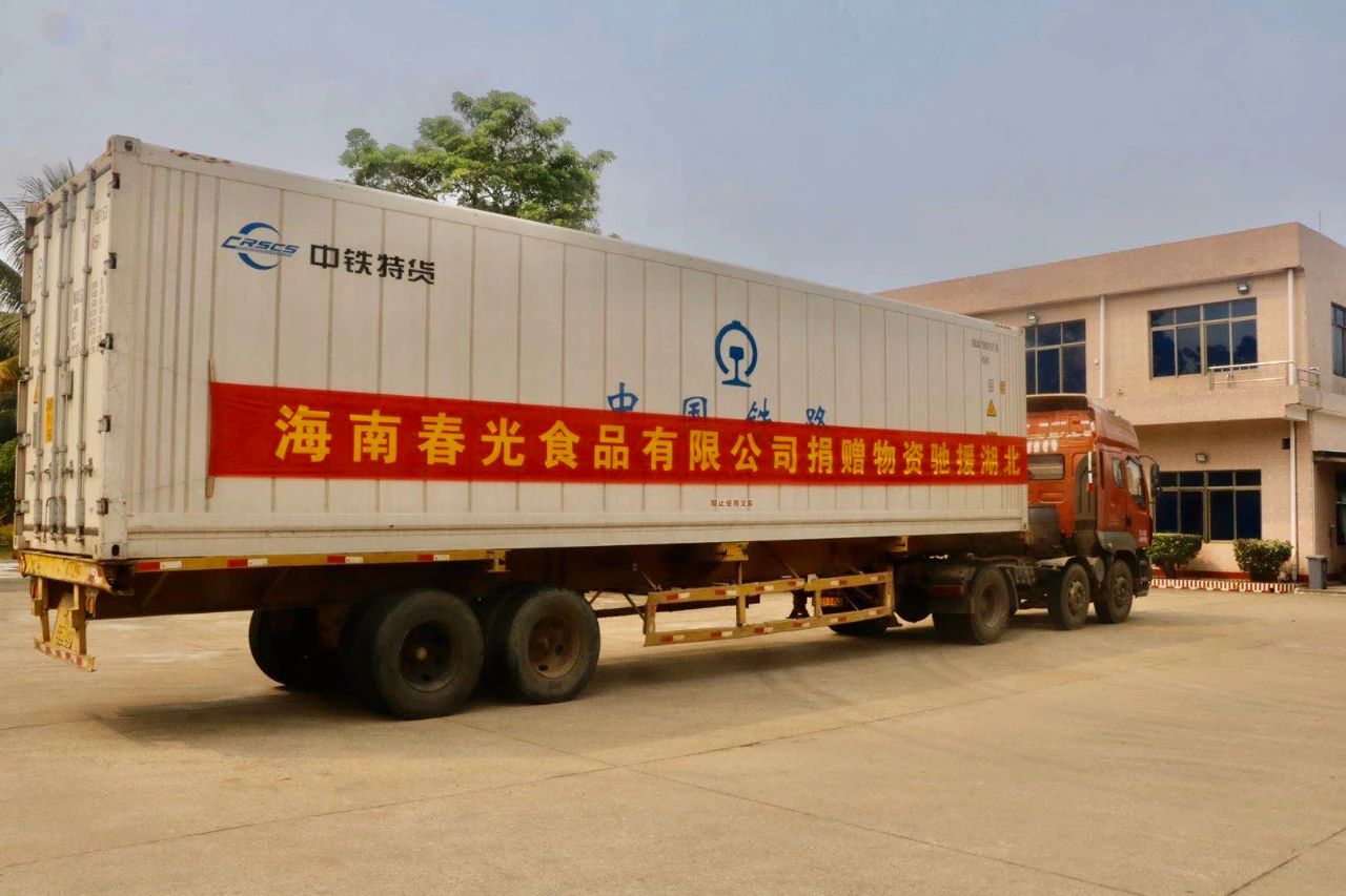 3月30日上午8點,滿載春光食品的物資運送貨車從海南春光食品工廠出發(fā),千里馳援湖北,為湖北送去抗疫物資。